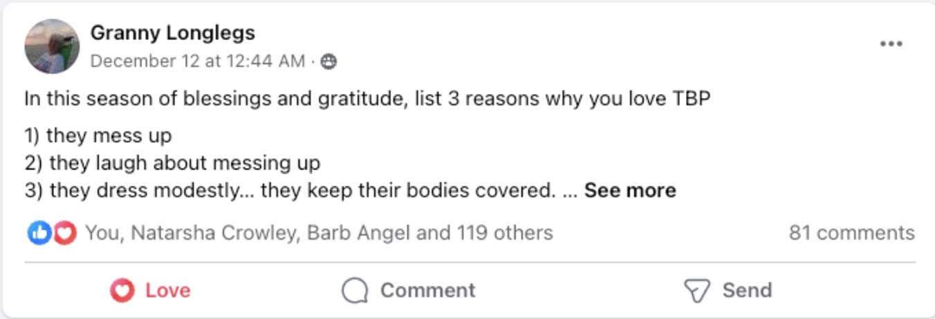 ‘In this season of blessings and gratitude, list 3 reasons why you love TBP…..’