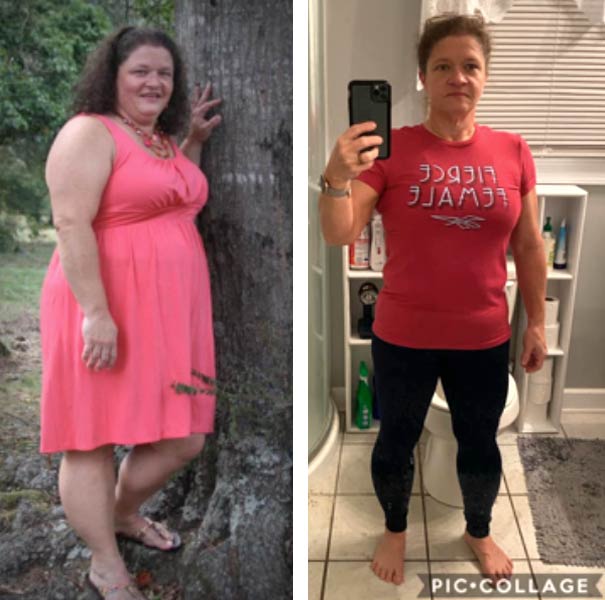 “My daughters found TBP videos on YouTube and we started on the free videos first. We quickly fell in love with them and have become lifers. The most recent picture I have is from November 2019 and the comparison picture is from June 2017. I am currently down 121 lbs. I will continue to workout 4-5 days a week and walk everyday. Thank you for these great workouts.“